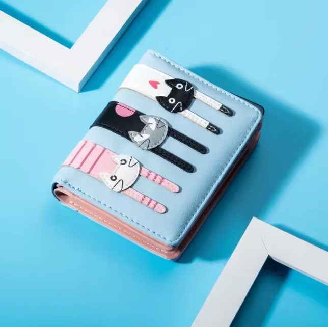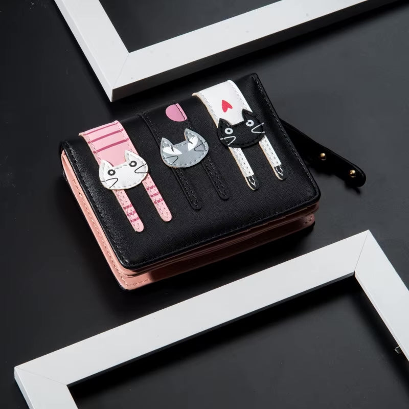A beautiful and unique small purse with three adorable kitties. Features card holder sleeves and zip-around coin pocket. Available in two colours - choose your favourite from the drop-down menu.