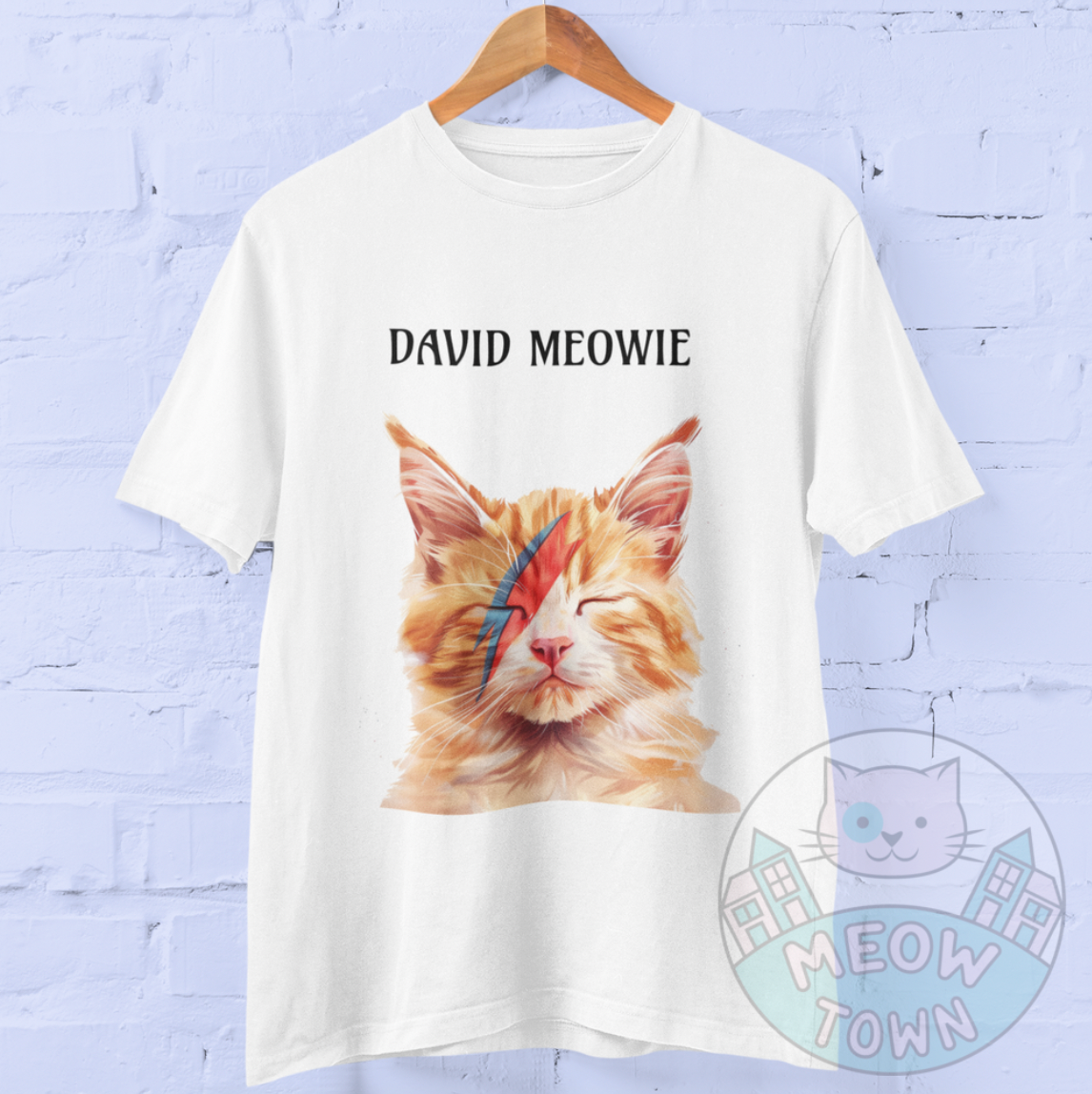 Classic unisex cotton T-shirt with funny 'David Meowie' print.