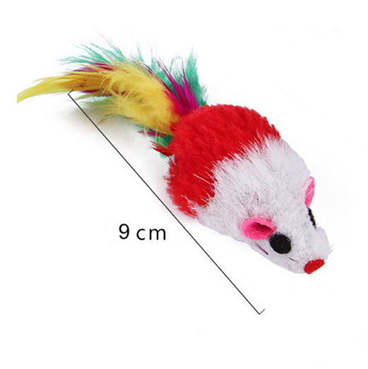 A large selection of (approx 20pcs) colourful mice, balls, teasers with various features and materials.